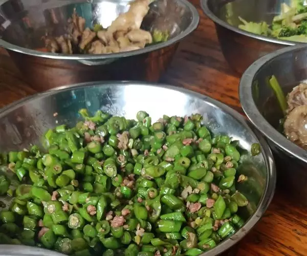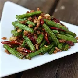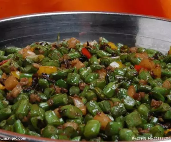 3.榄菜四季豆中的肉末可根据各人的喜好,选用猪肉、鸡肉等肉馅来烹调。