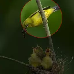 黑脸鹟莺:体长10厘米,是有特色的体小而多彩的莺鸟。粗眉纹,颏、喉及尾下覆羽黄色,脸罩黑,…