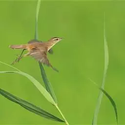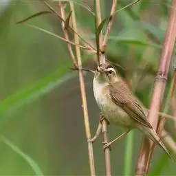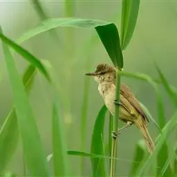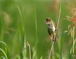 大苇莺:属小型鸟类,雌雄两性羽色相似。眉纹淡棕黄色;眼褐色;翅褐色具淡棕色的边缘;尾羽亦褐色,…