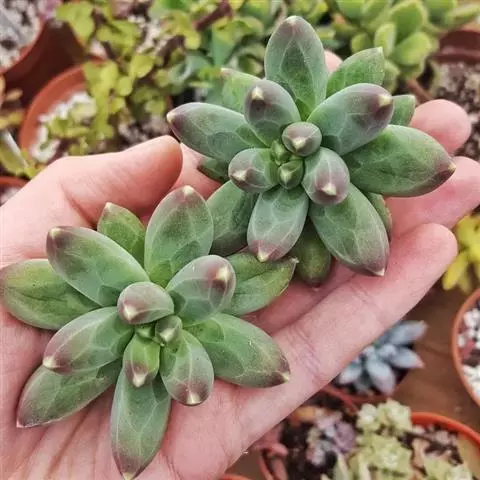 稻田姬,为景天科、厚叶草属多年生植物,多肉植物。高可达30厘米,成株具20-35片叶,特征是明显突…