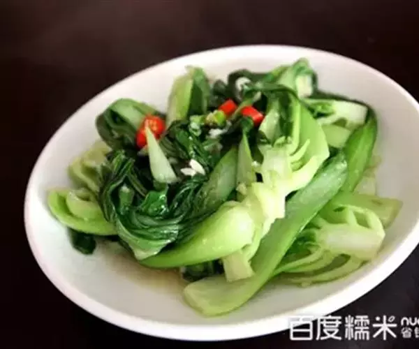 炒青菜是一道菜品,制作原料有青菜、精盐、白糖等,营养丰富,强身健体。此外,青菜中含有的粗纤维可促进大肠蠕动,增加大肠内毒素的排出,达到防癌抗癌的目的。