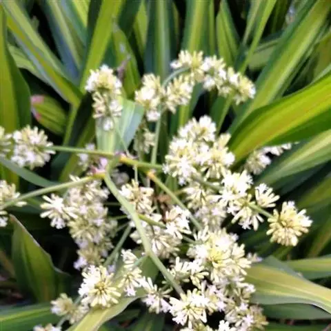 剑叶龙血树为长绿乔木状植物,茎高可达5-15米。茎粗大,分枝多,树皮灰白色,光滑,老干皮部灰褐色,片状剥落,幼枝有环状叶痕。叶聚生在茎、分枝或小枝顶端,互相套迭,剑形,薄革质,长50- 00厘米,宽2-5厘米,向基部略变窄而后扩大,抱茎,无柄。圆锥花序长40厘米以上,花序轴密生乳突状短柔毛,幼嫩时更甚;花每2-5朵簇生,乳白色;花梗长 3-6毫米,关节位于近顶端;花被片长6-8毫米,下部约1/4-1/5合生;花丝扁平,宽约0.6毫米,上部有红棕色疣点;花药长约1.2毫米;花柱细长。浆果直径约8-12毫米,桔黄色,具1-3颗种子。花期3月,果期7-8月。