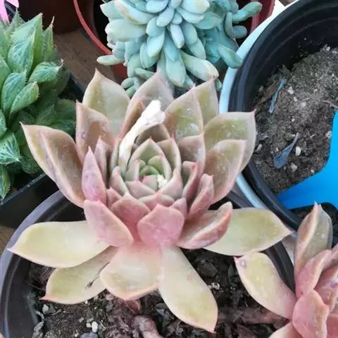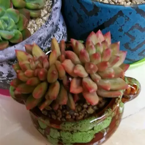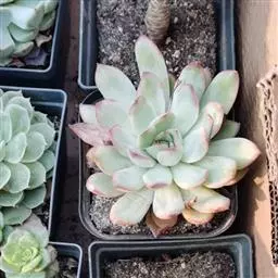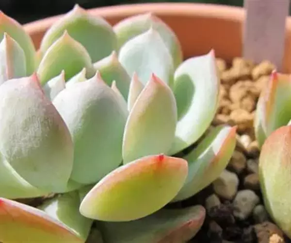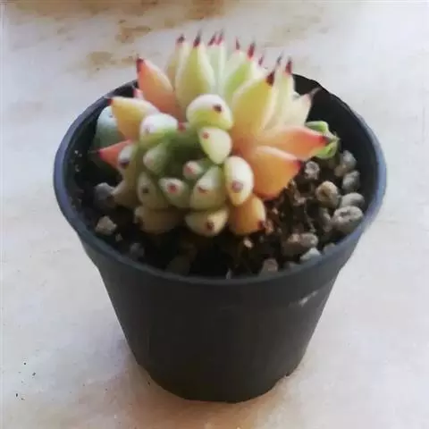 红边月影为景天科石莲花属多肉植物,在温差增大,光照增多时绿色的叶子会呈现边沿红色,非常好看!未出状态时呈现绿色。红边月影拉丁名现在有两种说法,一种是Echeveria albicans,另外一种是所谓更正的Echeveria Hanatsukiyo。