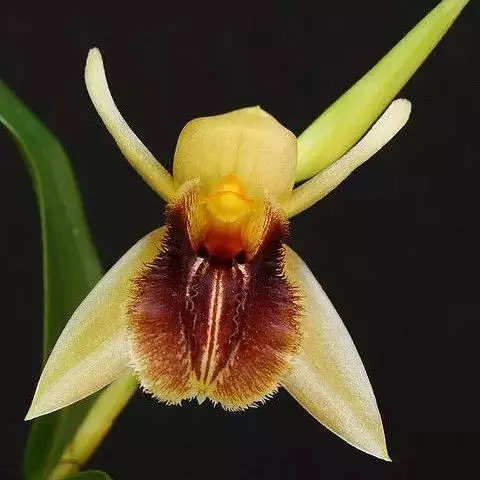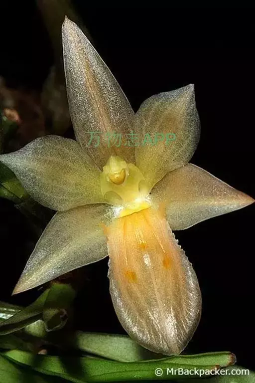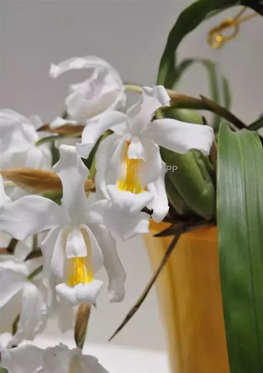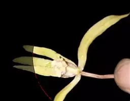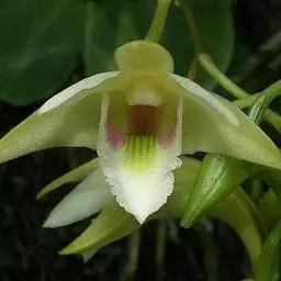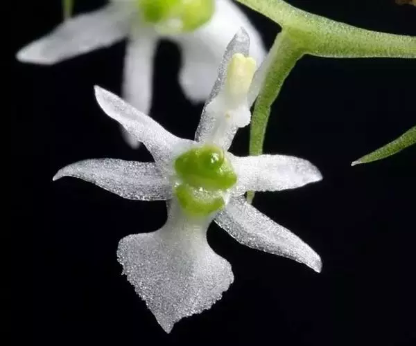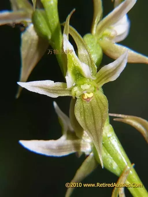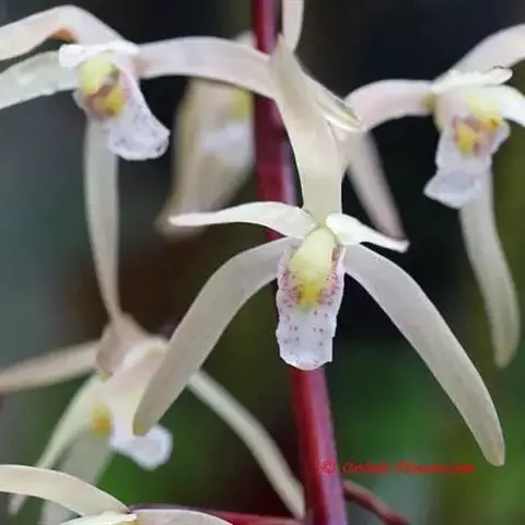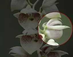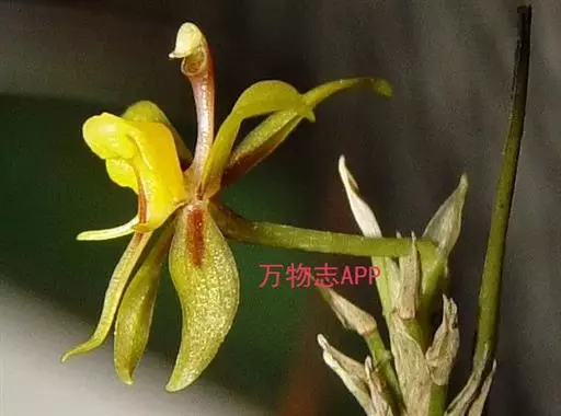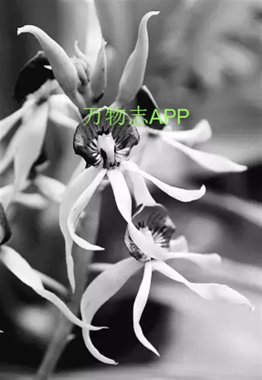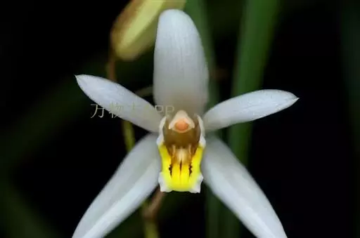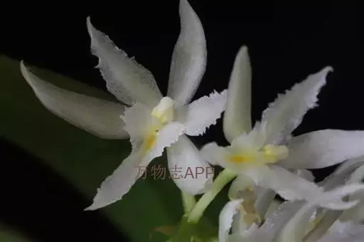 花葶连同幼嫩假鳞茎和叶从靠近老假鳞茎基部的根状茎上发出,长8-12厘米,下半部为鞘所包;总状花序长5-7厘米,具2-4朵花;花苞片卵状披针形,纸质,多少舟状,长2.5-3.5厘米,在花期不落;花梗和子房长2-2.5厘米;花白色,较大;萼片披针形或长圆状披针形,长3-4厘米,宽1-1.5厘米,先端急尖,背面多少具龙骨状突起。
