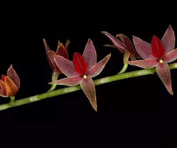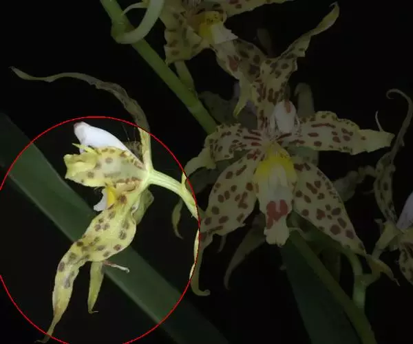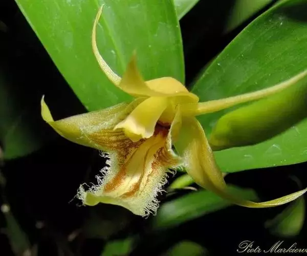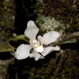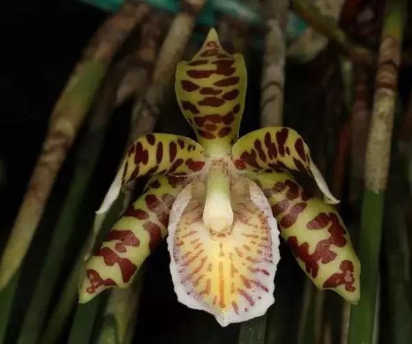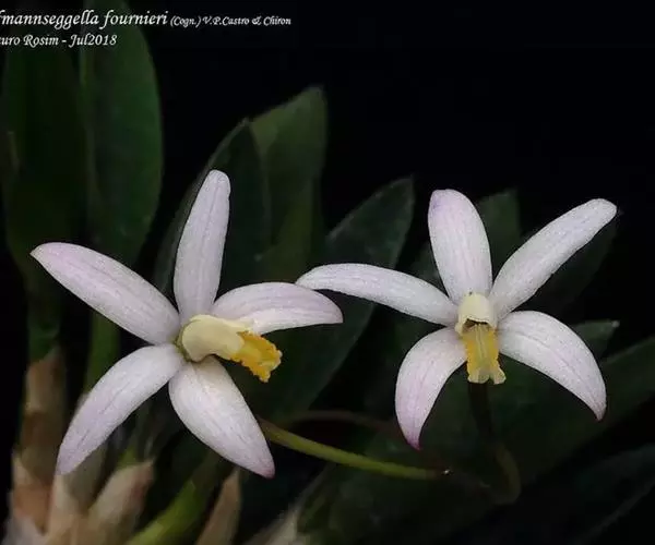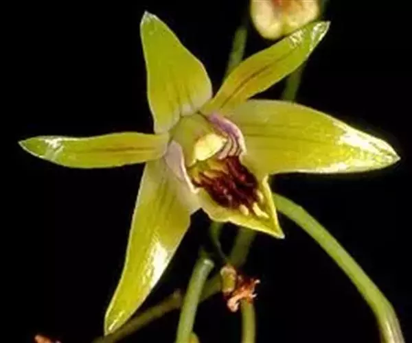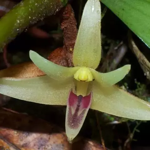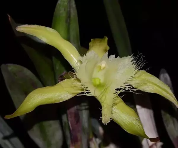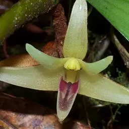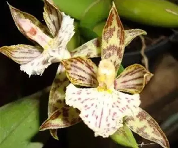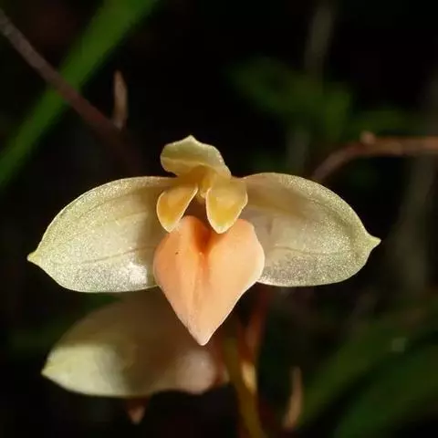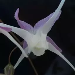 花葶连同幼嫩假鳞茎和叶从靠近老假鳞茎基部的根状茎上发出,长8-12厘米,下半部为鞘所包;总状花序长5-7厘米,具2-4朵花;花苞片卵状披针形,纸质,多少舟状,长2.5-3.5厘米,在花期不落;花梗和子房长2-2.5厘米;花白色,较大;萼片披针形或长圆状披针形,长3-4厘米,宽1-1.5厘米,先端急尖,背面多少具龙骨状突起。