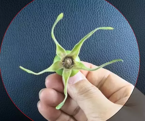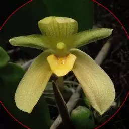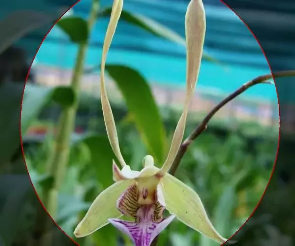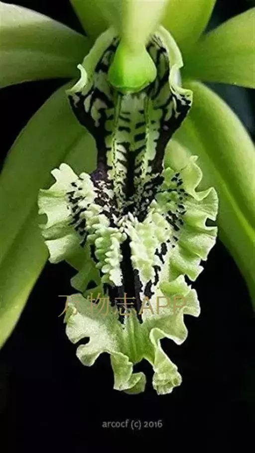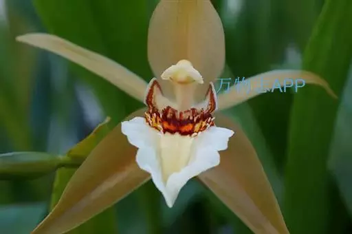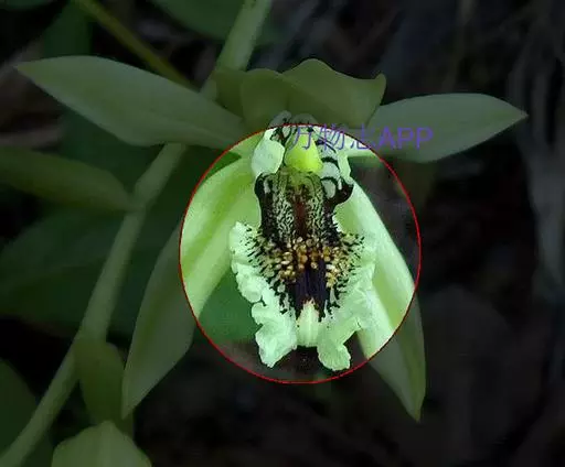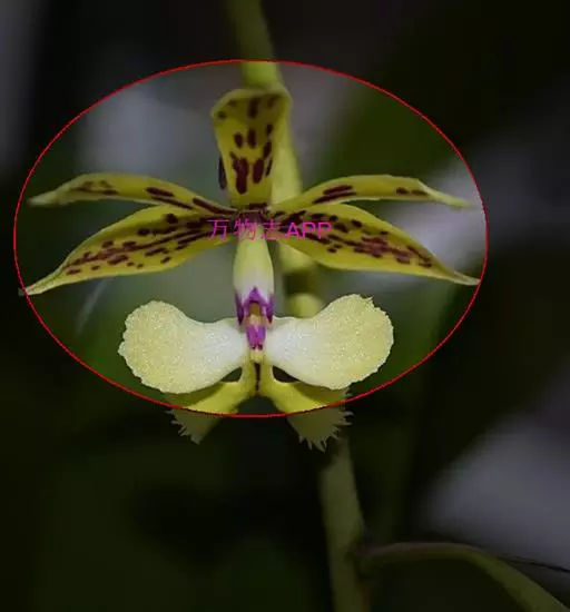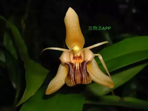 花瓣与萼片相似,宽约9-11毫米;唇瓣卵形,与花瓣近等长,凹陷,3裂;侧裂片半卵形,近全缘,直立;中裂片宽倒卵圆形或近扁圆形,长1.2-1.5厘米,先端钝或微凹,边缘近全缘,上面有2条短而宽的纵褶片;唇盘上有5条褶片完全撕裂成流苏状毛。蕊柱稍向前倾,长2-3厘米,两侧边缘具翅;翅自下向上渐宽,上部一侧宽约1.5毫米,顶端微凹或近截形。花期5月。