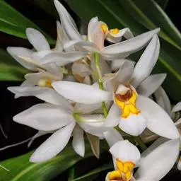 贝母兰(学名:Coelogyne cristata Lindl.)是隶属于兰科、贝母兰属的国家二级保护植物 。根状茎较坚硬,多分枝,粗4-6毫米,密被有光泽的、革质的、鳞片状鞘。假鳞茎在根状茎上相距1.5-3厘米,长圆形或卵形,顶端生2枚叶,叶线状披针形,坚纸质。花葶连同幼嫩假鳞茎和叶从靠近老假鳞茎基部的根状茎上发出;总状花序长5-7厘米,具2-4朵花;花白色,较大;萼片披针形或长圆状披针形;花瓣与萼片相似,宽约9-11毫米;唇瓣卵形,与花瓣近等长,凹陷,3裂。花期5月。