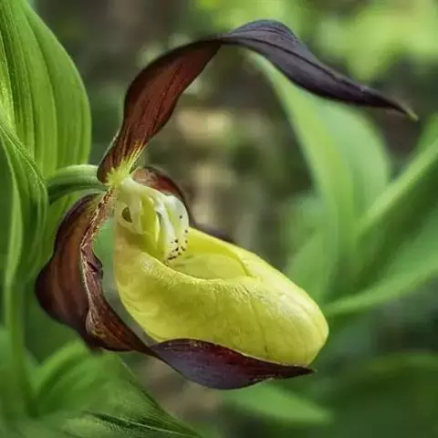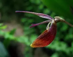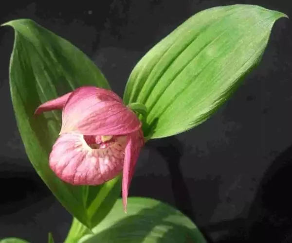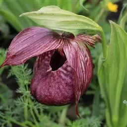 大花杓兰因其形状酷似一个口小肚大的囊袋,又名“大口袋兰”。花体呈紫红色,花朵直径5厘米至6厘米,…