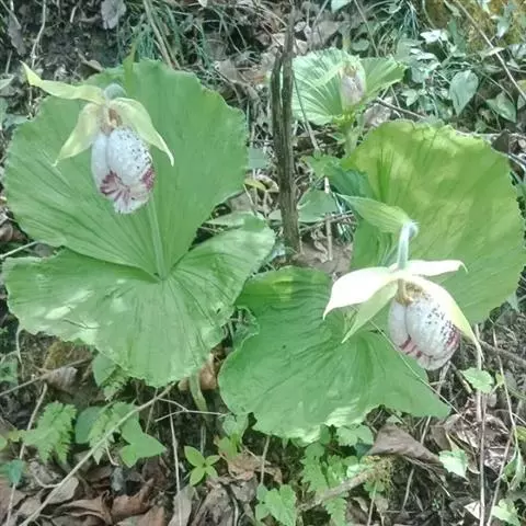 大花杓兰(学名:Cypripedium macranthum Sw.):植株高25-50厘米,具粗短的根状茎。茎直立,稍被短柔毛或变无毛,基部具数枚鞘,鞘上方具3-4枚叶。叶片椭圆形或椭圆状卵形。花序顶生,具1花,花大,紫色、红色或粉红色,通常有暗色脉纹,极罕白色;花瓣披针形,长4.5-6厘米,宽1.5-2.5厘米,先端渐尖,不扭转,内表面基部具长柔毛;唇瓣深囊状,近球形或椭圆形。蒴果狭椭圆形,长约4厘米,无毛。花期6-7月,果期8-9月。