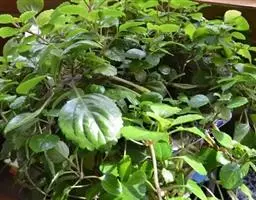 茎直立,多数,高0.6-1米,下部半木质,上部草质,四稜形,具四槽,有细条纹,黄褐色,有时带紫色,疏被微柔毛,不分枝间或有分枝,分枝短小而能育。