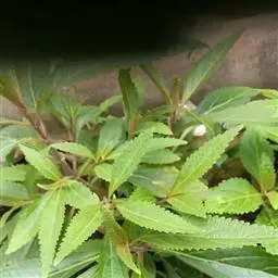尾叶香茶菜,学名Rabdosia excisa Maxim.) Hara,唇形目唇形科植物,多年生草本。株高可达1m,根状茎粗大,横走,表面疙瘩状,密生纤堆状须根;茎近四梭形,黄褐色,具四槽,具细条纹和柔毛;叶圆形或卵固形,先端具深凹,凹缺中有一尾状长尖的顶齿。叶基宽楔形或近截形,叶面和叶背沿脉疏生短柔毛,其他处散生黄色腺点,侧脉3~4对。叶缘中部以上有大锯齿,叶柄上部具翅,微被柔毛;圆锥花序顶生或生于上部叶腋, 花序梗及花梗微被柔毛.苞片卵状披针形,小苞片线形;花萼钟形,萼齿5裂。花冠淡紫、紫或蓝色,两唇形,上唇4裂,外翻,下唇卵形;小坚果4枚,顶端圆,有毛和腺点,成熟时棕褐色。花果期7~9月。生于林缘、林萌下、路边、草地上,海拔550—1100米。