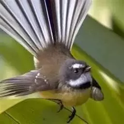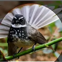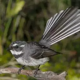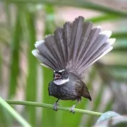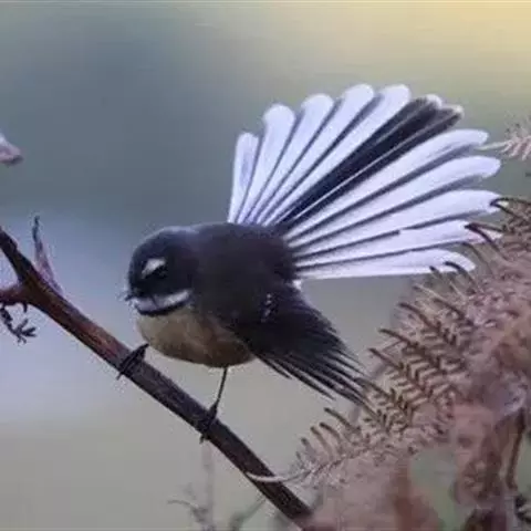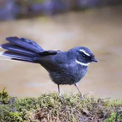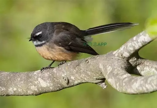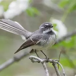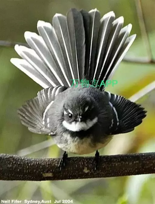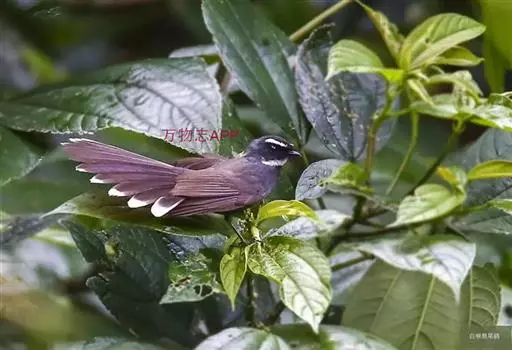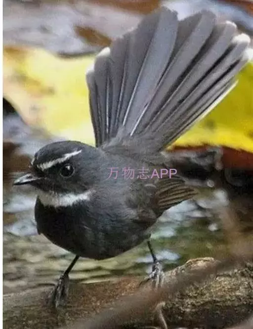 白眉扇尾鹟:体长17厘米,是一种中等体型的灰色扇尾鹟。色彩独特。宽宽的眉纹及前额白色,尾有白色宽边…