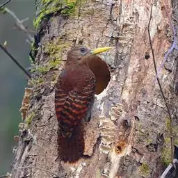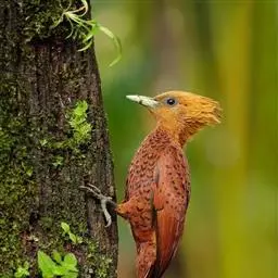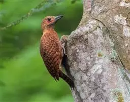 栗啄木鸟:是一种红褐色啄木鸟,体长21厘米。雄性成鸟整个头棕色,…