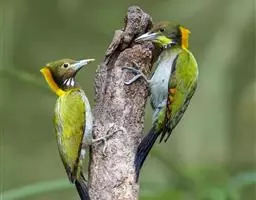 星头啄木鸟雌鸟和雄鸟相似,但枕侧无红色。