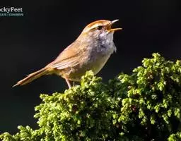 强脚树莺是雀形目树莺科树莺属鸟类,又称山树莺。成鸟额至头顶红棕色,长眉纹淡皮黄色,贯眼纹黑褐色,…