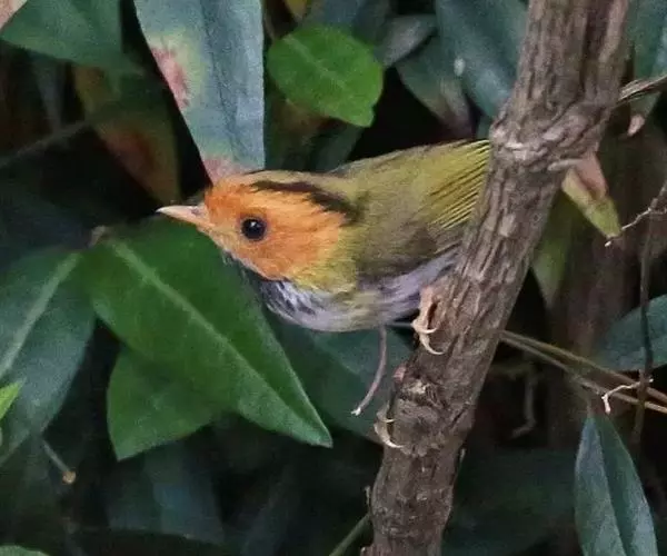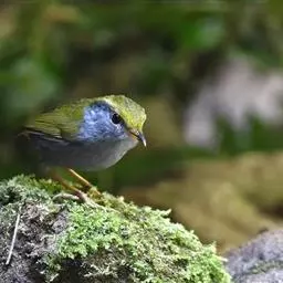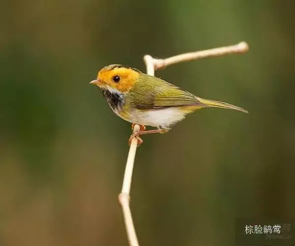 棕脸鹟莺(学名:Seicercus albogularis):体长10厘米,是一种色彩亮丽而有特色的莺鸟。头栗色,具黑色侧冠纹。上体绿,腰黄色。下体白,颏及喉杂黑色点斑,上胸沾黄。与栗头鹟莺的区别在头侧栗色,白色眼圈不显著且无翼斑。华南亚种的脸部棕红色较重,上体色较深。虹膜褐色;上嘴色暗,下嘴色浅;脚粉褐色。
