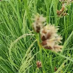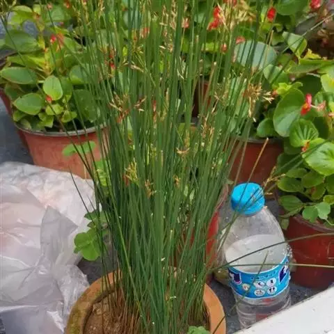 水毛花又名:三角草、水三棱草、丝毛草、三棱观。多年生草本,高60-100cm。根茎粗短,有细长须根。秆丛生,较粗壮,锐三棱形,基部有2叶鞘,无叶片。苞片1,为秆的延长,直立,长3-14cm。小穗2-9,聚集成头状,假侧生,卵形或长圆状卵形,长8-16mm,宽4-6mm,有多数花;鳞片长圆状卵形,长4-5mm,淡棕色,先端有短尖,中脉1,两侧有红棕色短条纹;下位刚毛6条,与小坚果近等长,有倒刺;雄蕊3,花药线形;柱头3。小坚果宽倒卵形,扁三棱状,长2-2.5mm,熟时棕黑色,有光泽,具不明显的皱纹。花果期5-9月。