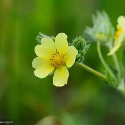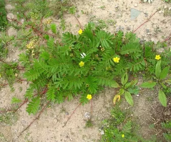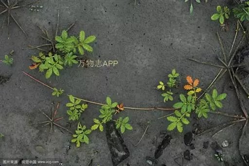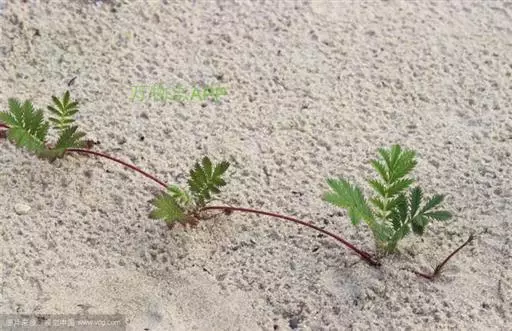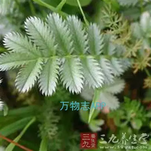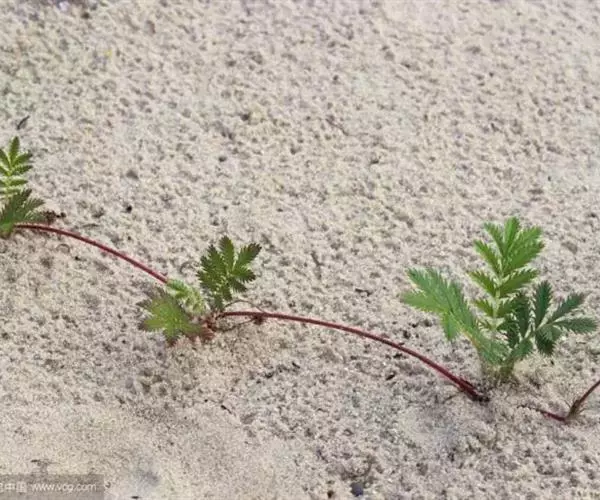 鹅绒委陵菜,多年生匍匐草本,叶正面深绿,背后如羽毛,密生白细绵毛,宛若鹅绒。块根纺锤形或球形,棕褐色。茎细弱,紫红色。节上生不定根。不整齐羽状复叶。花单生叶腋,被柔毛;花瓣5,黄色,倒卵形或近圆形,全缘。瘦果褐色,卵圆形。花果期5-9月。属于喜光耐阴性植物,气候适应性广泛。
