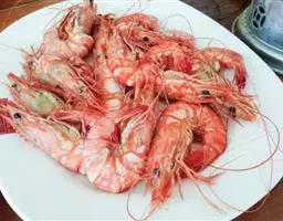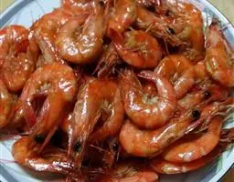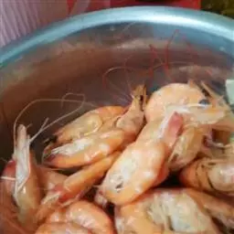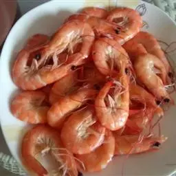 2、锅里油烧热,下鲜虾变红后,盛出。