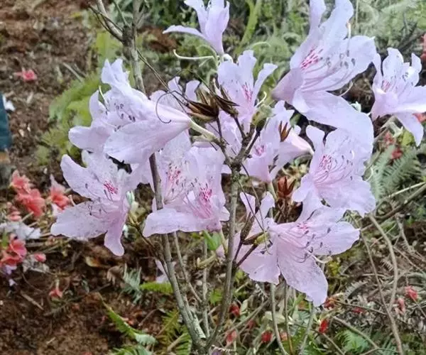 满山红是杜鹃花科杜鹃属的落叶灌木。珠高可达1-2米,枝条轮生;叶片轮生枝端,近革质或纸质,…