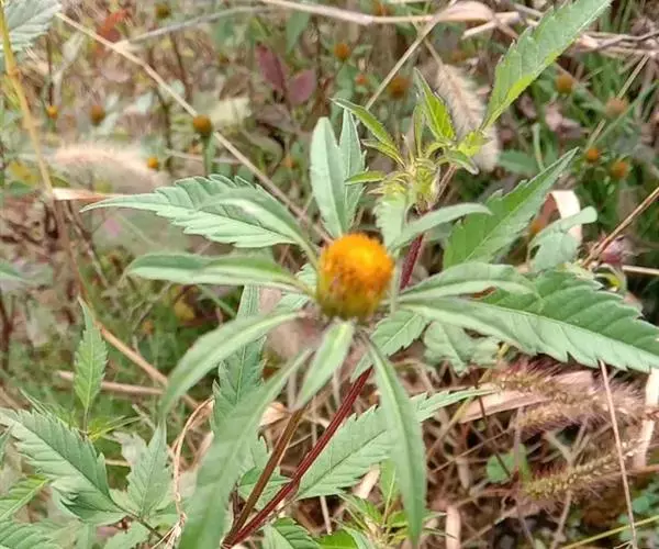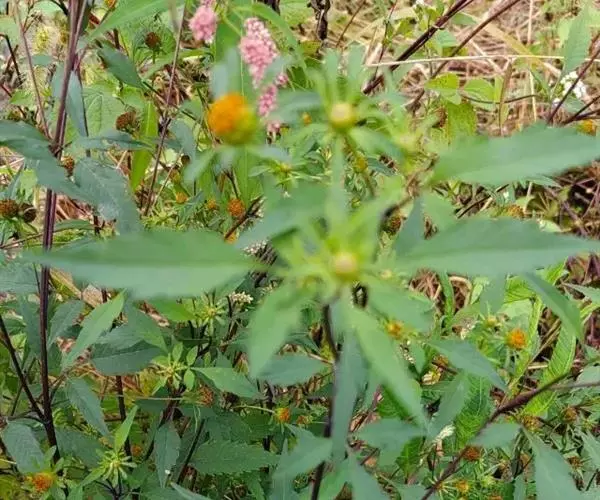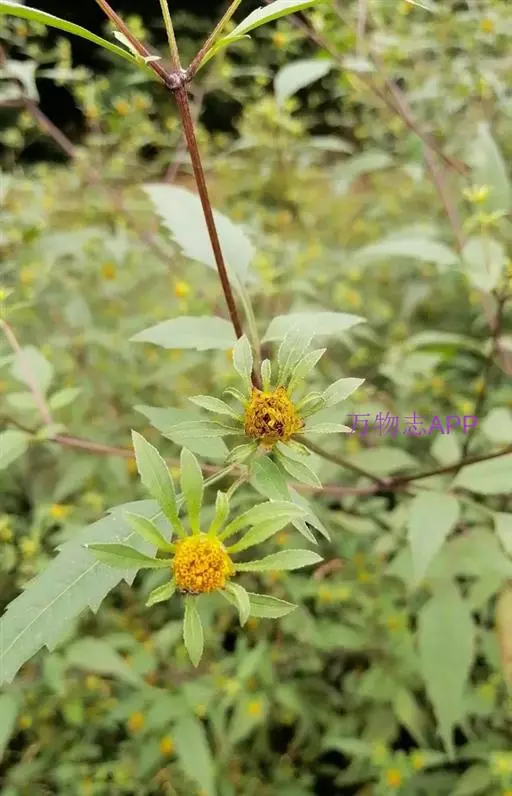 鬼针草,菊科鬼针草属的一年生草本植物,茎直立,钝四棱形;两侧小叶椭圆形或卵状椭圆形;无舌状花,…
