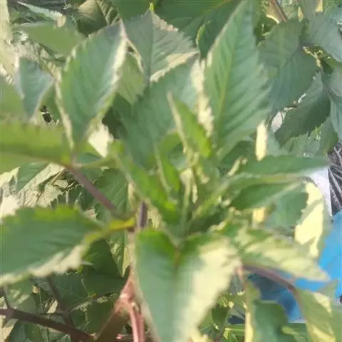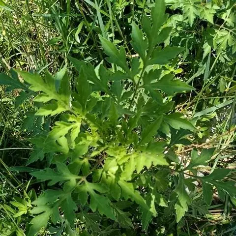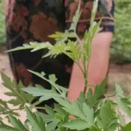叶对生,无毛,叶柄有狭翅,椭圆形或长椭圆状披针形,边缘有锯齿。上部叶3深裂或不裂,茎顶部的叶小,有时不分裂;茎中、下部的叶片羽状分裂或深裂,裂片3~5,卵状披针形至狭披针形,边缘疏生不整齐大锯齿,顶端裂片通常比下方者大,叶柄有翼。