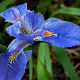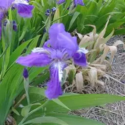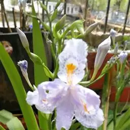 双色野鸢尾为多年生草本植物,叶子呈剑状淡绿色。…