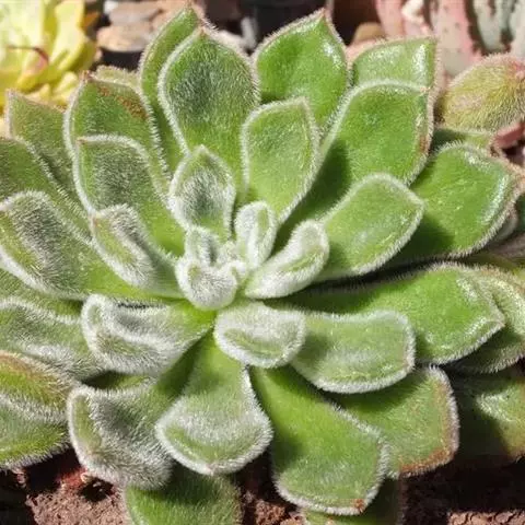 高砂之翁是景天科,拟石莲花属的多肉植物。特征是其边缘呈大波浪卷形的宽大叶片,…
