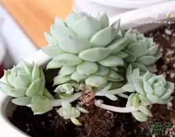 吉娃莲,景天科拟石莲花属,别名:吉娃娃,吉娃莲,植株小型,无茎的莲座叶盘非常紧凑。卵形叶较厚,带小尖,…