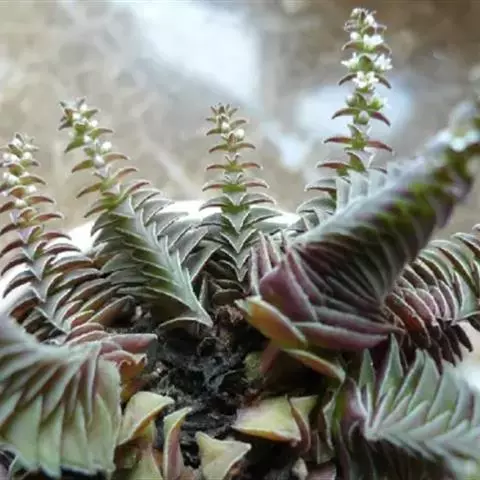 茜之塔 Toelken)是景天科青锁龙属多年生肉质草本植物。茜之塔叶交互对生,紧密排列,三角形,绿色,…
