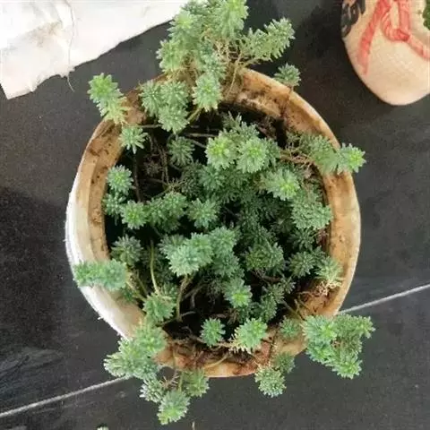 薄雪万年草别名矶小松,景天科景天属多年生草本植物,其细小的蓝绿色棒状叶片环绕生长于茎端,…