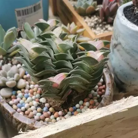 灯美人是景天科的园艺品种,多肉植物。叶片近柱状,丛生,在日照时间长、温差大的环境下会呈现橙粉色。