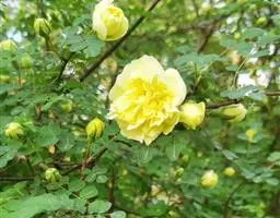 黄木香花 Rehd.)是蔷薇科、蔷薇属植物,为木香花的变型品种,攀缘小灌木,高可达6米。小叶3-5枚,…