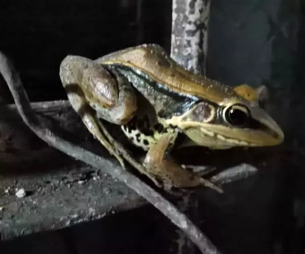 黑斑侧褶蛙是无尾目蛙科侧褶蛙属两栖动物,又名为刺雄齿突蟾、黑青蛙。 头长大于头宽;吻部略尖,吻端钝圆,…