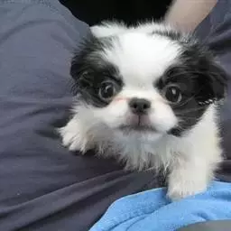 日本狆是极小型犬;被毛长而丰厚,不弯曲;毛色为白色底,带黑色或栗色斑块,…