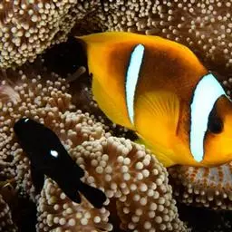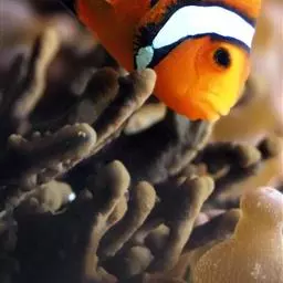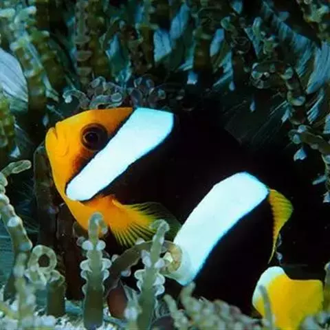 眼斑双锯鱼(Amphiprion ocellaris)又称公子小丑,公仔小丑,为鲈形目、雀鲷科、双锯鱼属一种热带海水鱼类。眼斑双锯鱼分布于西太平洋印度尼西亚、泰国、菲律宾、新加坡及澳大利亚西北部,活动于珊瑚礁区,觅食各类有机物碎屑及小型猎物,与海葵有着明显的伴生关系,平日躲藏于海葵中。为一种著名观赏鱼。