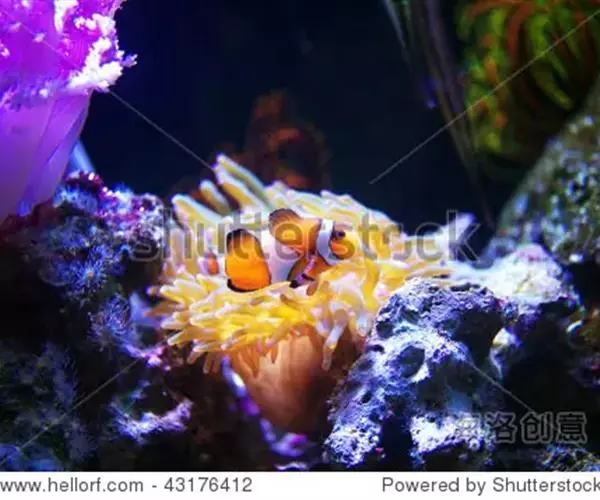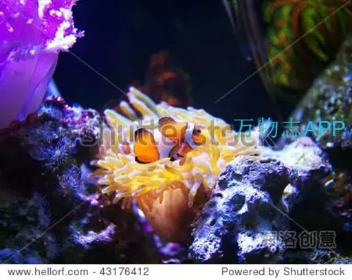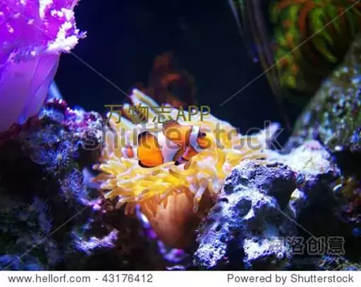 眼斑双锯鱼与其他鱼类共生,此鱼英文Clownfish,右图第12行