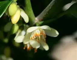 花两性或单性,开花时直径1-1.4厘米,通常生于当年生无叶的小枝上或生于叶腋,花梗长约1厘米,稍粗壮;两性花:小苞片2,三角形或三角状卵形,长1.5-2毫米,顶端尖,边缘具腺状齿突;萼片5,卵圆形或长圆卵形,长4-5毫米,宽3-4毫米,顶端圆,边缘通常疏生线状齿突,无毛;花瓣5,淡黄白色,倒卵形,长6-7毫米,宽4-5毫米,顶端圆,常有微凹;雄蕊约50枚,长4-5毫米,长短不一,花药长圆形,远较花丝为长,无毛;子房圆卵形,2室,胚珠每室2个,花柱短,顶端浅2裂。