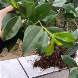 厚皮香大苗起苗时必须带土,土球直径为30厘米左右。先用草绳把土球绕两圈并捆紧扎牢,以防土球松散。然后截断主根移到地面后用草绳扎好。移栽时适当修剪造型,保持树姿优美,减少蒸发量。