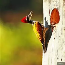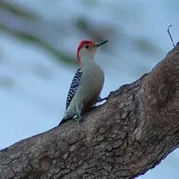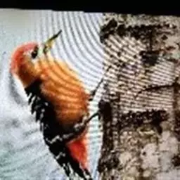 红腹啄木鸟成年雄鸟头项有红帽,翅膀和上体是黑白相间的斑纹状羽毛,腹部有一片红羽毛。头亦大,但颈较长,…