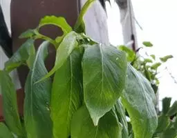 2.盆土缺磷,叶片卷曲,叶色暗绿,下部叶的叶脉间黄化;