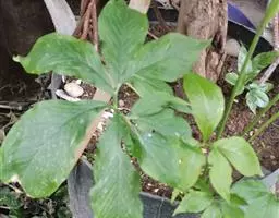 5.盆土缺铁,出现焦褐斑干枯。