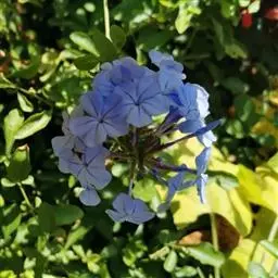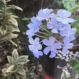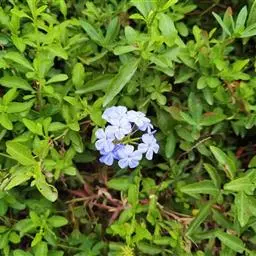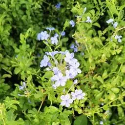 蓝花丹(学名:Plumbago auriculata Lam.)是白花丹科白花丹属植物,常绿柔弱半灌木,上端蔓状或极开散,高约1米或更长,除花序外无毛,被有细小的钙质颗粒。叶薄,通常菱状卵形至狭长卵形。穗状花序约含18-30枚花;总花梗短,通常长2-12毫米。果实未见。花期6-9月和12-4月。