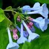 穗状花序约含18-30枚花;总花梗短,通常长2-12毫米,穗轴(包括果期)长2-5(8)厘米,与总花梗及其下方1-2节的茎上密被灰白色至淡黄褐色短绒毛;苞片长4-10毫米,宽约1-2毫米,线状狭长卵形,先端短渐尖,小苞长约2-6毫米,宽约1-2毫米,狭卵形或长卵形,先端急尖或有短尖;萼长11-13.5毫米,萼筒中部直径约1-1.2毫米,先端有5枚长卵状三角形的短小裂片,裂片外面被有均匀的微柔毛,萼筒上半部或上部和裂片的绿色部分着生具柄的腺;花冠淡蓝色至蓝白色,花冠筒长3.2-3.4厘米,中部直径0.5-1毫米,冠檐宽阔,直径通常2.5-3.2厘米,裂片长约1.2-1.4厘米,宽约1厘米,倒卵形,先端圆;雄蕊略露于喉部之外,花药长约1.7毫米,蓝色;子房近梨形,有5棱,棱在子房上部变宽而突出成角,花柱无毛,柱头内藏。果实未见。花期6-9月和12-4月。