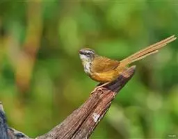 黑喉山鹪莺:体长16厘米,是一种长尾的褐色鹪莺。具明显的白色眉纹及形长的尾。特征为胸具黑色纵纹。…
