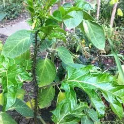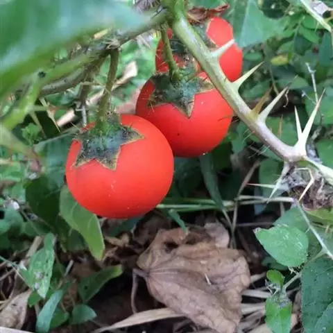 乳茄,茄科茄属直立草本植物,覆盖短的柔毛和扁平尖刺,小枝覆盖长柔毛和扁平刺,刺为蜡黄色,…