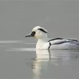 斑头秋沙鸭,是鸭科、斑头秋沙鸭属鸟类。雄鸟眼先和眼周黑色,成块斑状;头部其余部分全为白色。…