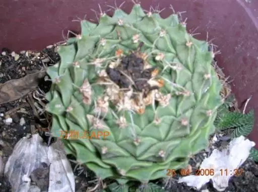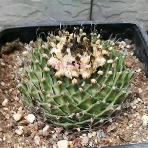 还有的是因为将生了根後的接穗用非常细的培养土栽植,土壤遇水後引起板结、根系完全不能透气、致使落地接穗的根系发生腐烂。在有的花友家中还发现,将落地或实生帝冠栽植在过于密闭、潮湿甚至阴蔽的多层玻璃柜内,看到的是球体拔长、疣突变小、顶上无毛,球体下、中 帝冠 部长有锈红斑点。经询问其整个生长期都难以见花,这样的栽植方法当引起爱好者的注意。