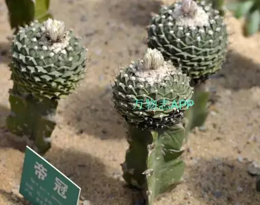 生态特性 一是光照充分但不直接曝晒,以防曝晒后疣变成暗红褐色、过度干缩而停止生长,有时还易生红蜘蛛。二是不过阴、在家庭栽植的环境中尽量将帝冠置于光照较好的地方养植,以防球体陡长,疣突变小。三是不过湿,密闭玻璃缸、柜养植的帝冠要经常开盖透气,以防毛刺过早脱落、球体下部长锈斑,尤其要防止因过潮湿引起的冬季受冻和夏季闷缸而引起烂根。简而言之,帝冠喜光而不可直晒;喜干而不可太干;怕湿而不可不湿;耐寒而不可受冻,且生长极为缓慢,是仙人掌类植物中种植最为困难的品种之一。