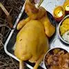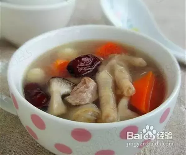 2.鸡爪、香菇、冬笋片、火腿片放进大汤碗内,倒入鸡汤、葱姜汁、精盐、味精、绍酒,上笼用旺火蒸至鸡爪软糯酥烂取出,淋入鸡油即成。